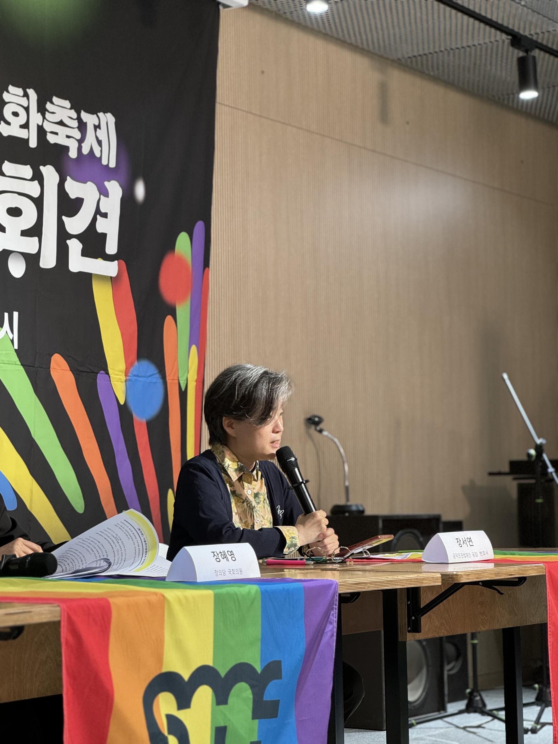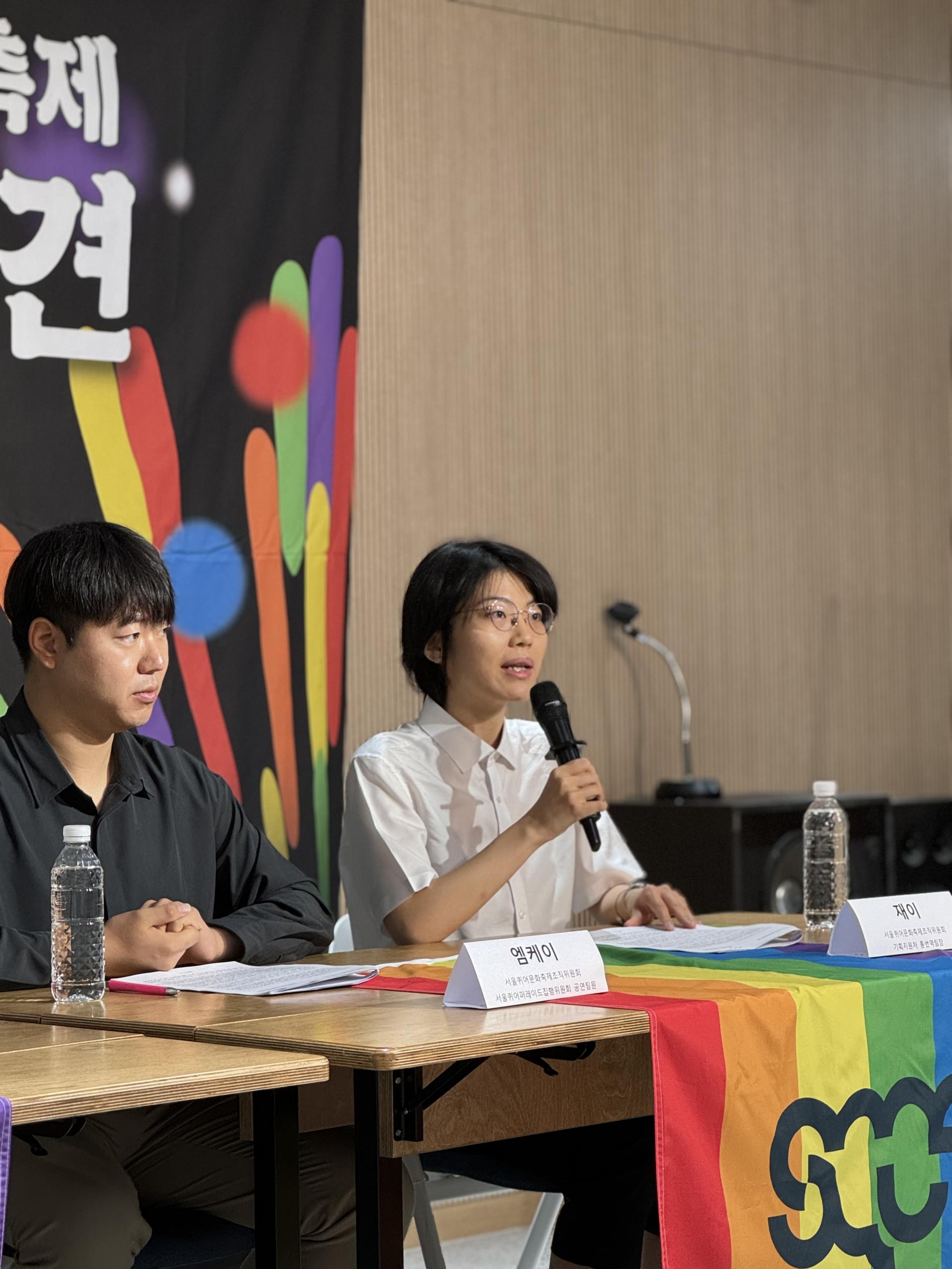 기자회견 현장에는 홀릭 서울퀴어문화축제 조직위원장, 현주 서울퀴어퍼레이드 집행위원장을 대신하여 엠케이 기획단원, 신효진 한국퀴어영화제 집행위원장을 대신하여 재이 기획단원, 양은석 서울퀴어문화축제조직위원회 사무국장이 발표했으며 강명진 서울퀴어문화축제조직위원회 상임이사가 사회를 맡았습니다.