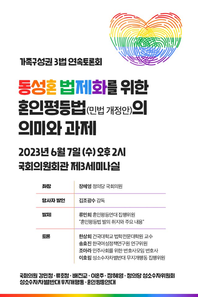 🏳️🌈 06.07 | [가족구성권 3법 연속토론회] 동성혼 법제화를 위한 ‘혼인평등법(민법 개정안)’의 의미와 과제