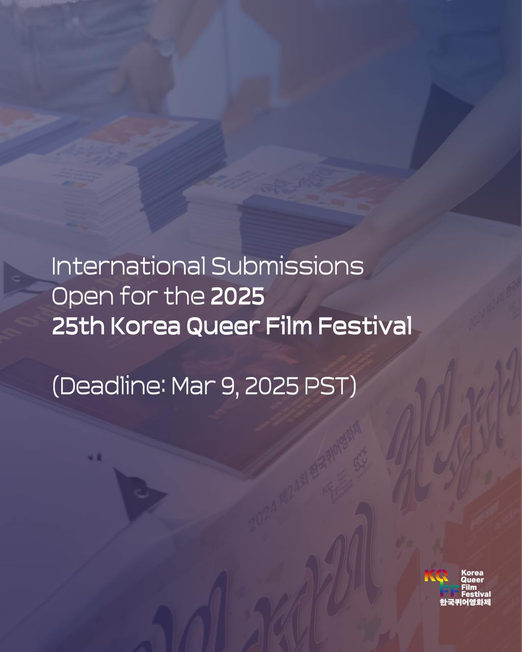 We are now receiving entries for international submissions for the 2025 25th Korea Queer Film Festival. With your submissions, we hope KQFF2025 will be another event full of insight and perspectives on the LGBTIAQ+ community.