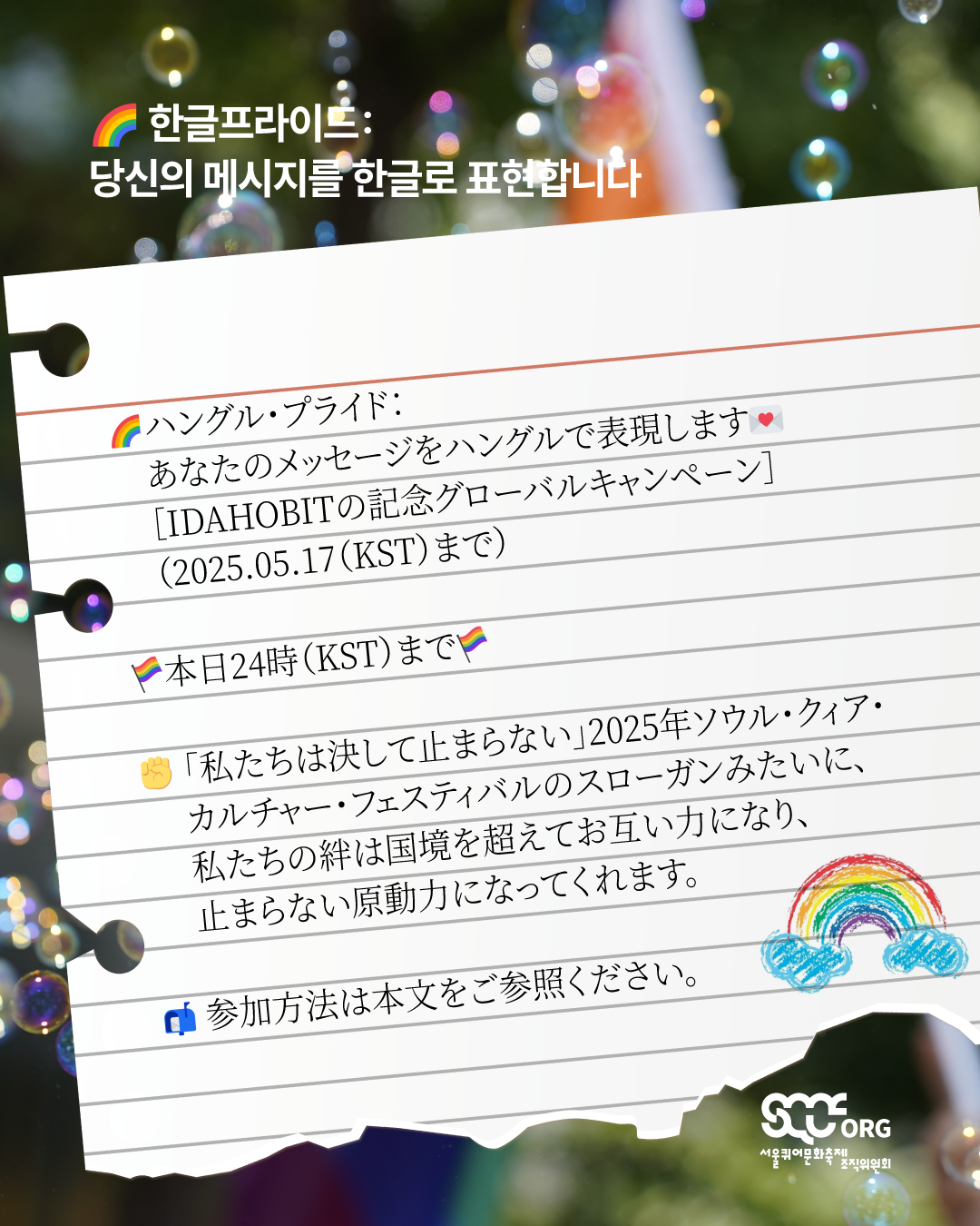 ✊「私たちは決して止まらない」2025年ソウル・クィア・カルチャー・フェスティバルのスローガンみたいに、私たちの絆は国境を超えてお互い力になり、止まらない原動力になってくれます。