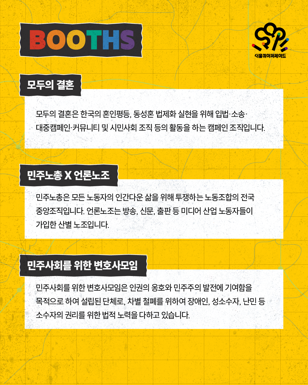์ ์์ํด ์๋ฐ์ ์ผ๋ก ์ฌ๋๋ค์ด ๋ชจ์ฌ ์ฑํ๋ฑ์ ์ธ์น๋ ํ๋์ ํ๊ณ ์์ต๋๋ค. ์ง๊ธ ๋์์์ ์ต๋ ๊ท๋ชจ์ ์ฑ์์์ ์ด๋์ด ๋์ด LGBT+์ ๋ํ ์ฌํ์ ์ดํด์ ์กด์ค์ ์ฆ์งํ๋ ๊ฒ์ ๋ชฉํ๋ก ํฉ๋๋ค.