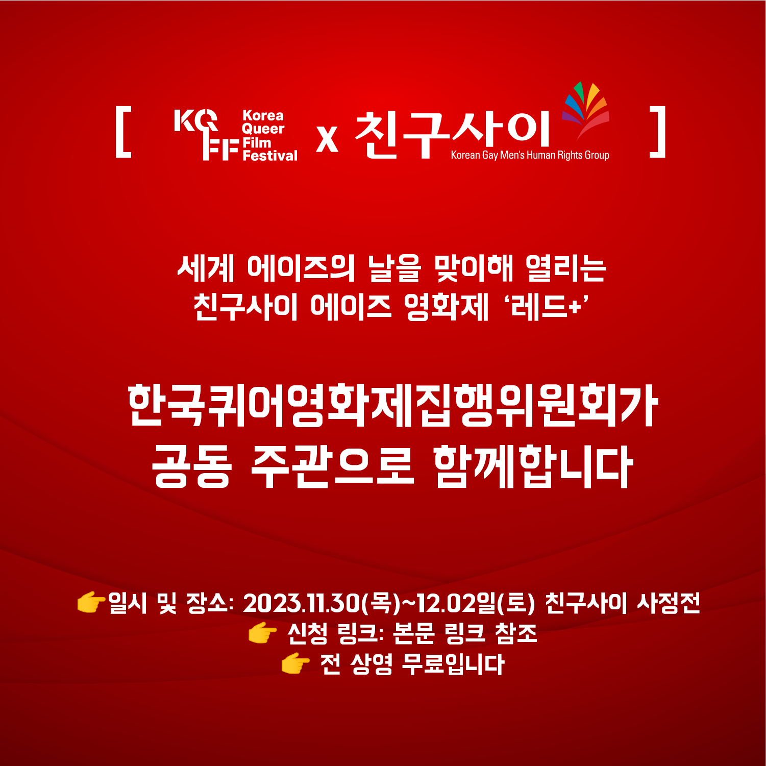 👉 영화제 일시 및 장소: 2023.11.30(목)~12.02일(토) 친구사이 사정전