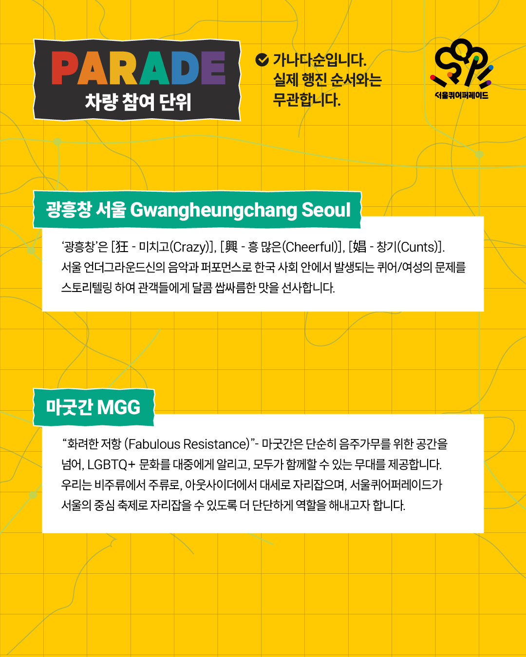- “ํ๋ คํ ์ ํญ (Fabulous Resistance)”- ๋ง๊ตฟ๊ฐ์ ๋จ์ํ ์์ฃผ๊ฐ๋ฌด๋ฅผ ์ํ ๊ณต๊ฐ์ ๋์ด, LGBTQ+ ๋ฌธํ๋ฅผ ๋์ค์๊ฒ ์๋ฆฌ๊ณ , ๋ชจ๋๊ฐ ํจ๊ปํ ์ ์๋ ๋ฌด๋๋ฅผ ์ ๊ณตํฉ๋๋ค. ์ฐ๋ฆฌ๋ ๋น์ฃผ๋ฅ์์ ์ฃผ๋ฅ๋ก, ์์์ฌ์ด๋์์ ๋์ธ๋ก ์๋ฆฌ์ก์ผ๋ฉฐ, ์์ธํด์ดํผ๋ ์ด๋๊ฐ ์์ธ์ ์ค์ฌ ์ถ์ ๋ก ์๋ฆฌ์ก์ ์ ์๋๋ก ๋ ๋จ๋จํ๊ฒ ์ญํ ์ ํด๋ด๊ณ ์ ํฉ๋๋ค.